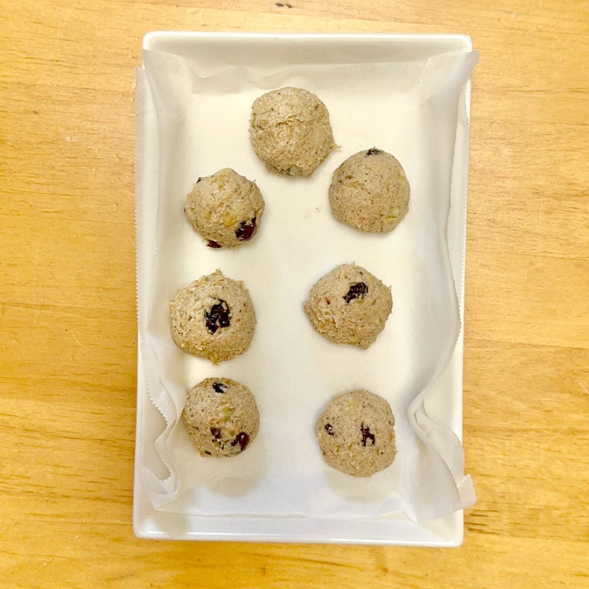 Step 4: Grease hands with oil, using tablespoon scoop out the mixture, roll it into ball and place on a lined tray.