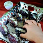 - Place the stuffed dates on a plate and repeat the process for the remaining dates.