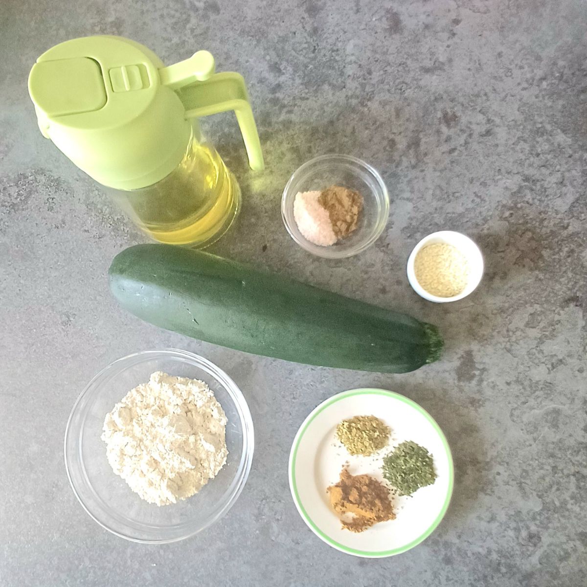 - Pantry Staples: Oat flour, olive oil, oregano and dried parsley.
