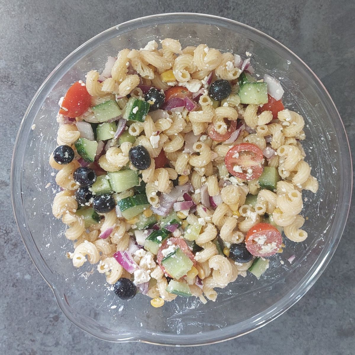- Enjoy delicious Greek pasta salad with vegetables straight away or refrigerate it until ready to serve.
