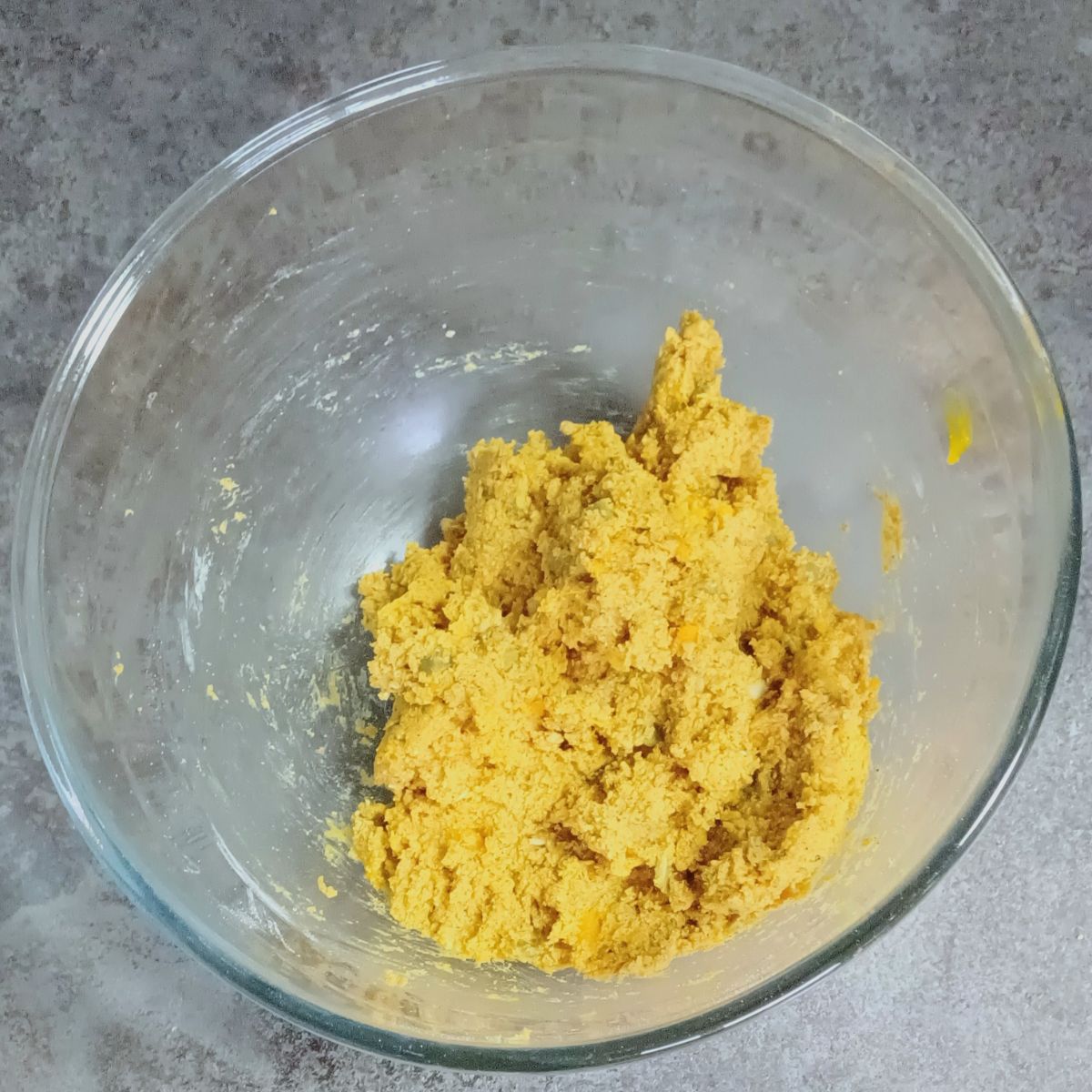 - Mix with a spoon until everything is well combined and comes together as a dough.