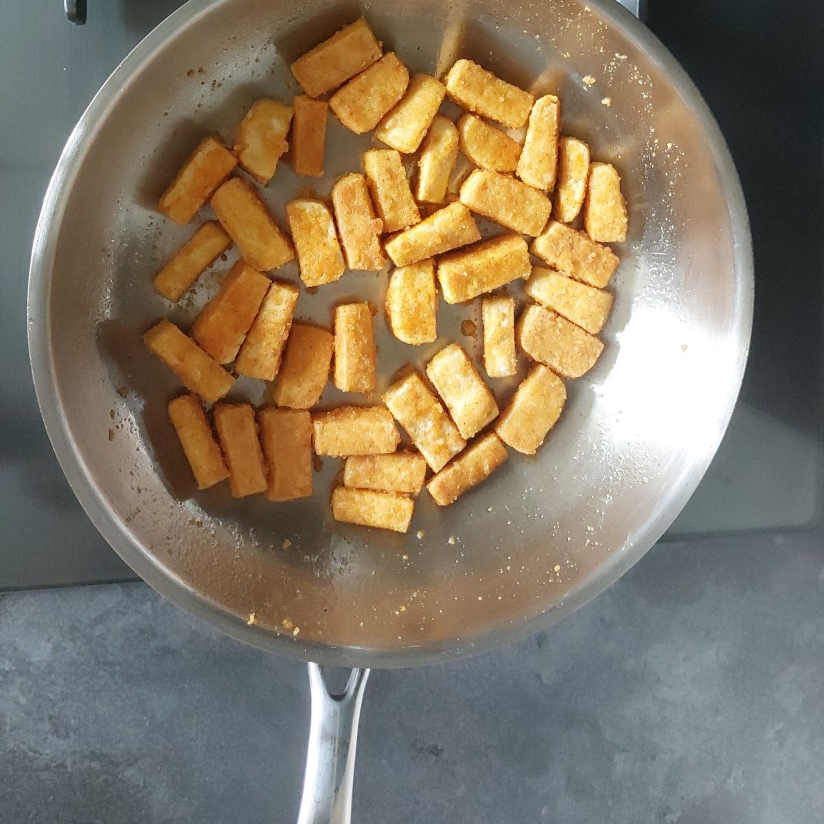 Store leftover pan fried sesame tofu in an airtight container in the fridge for up to 2-3 days.