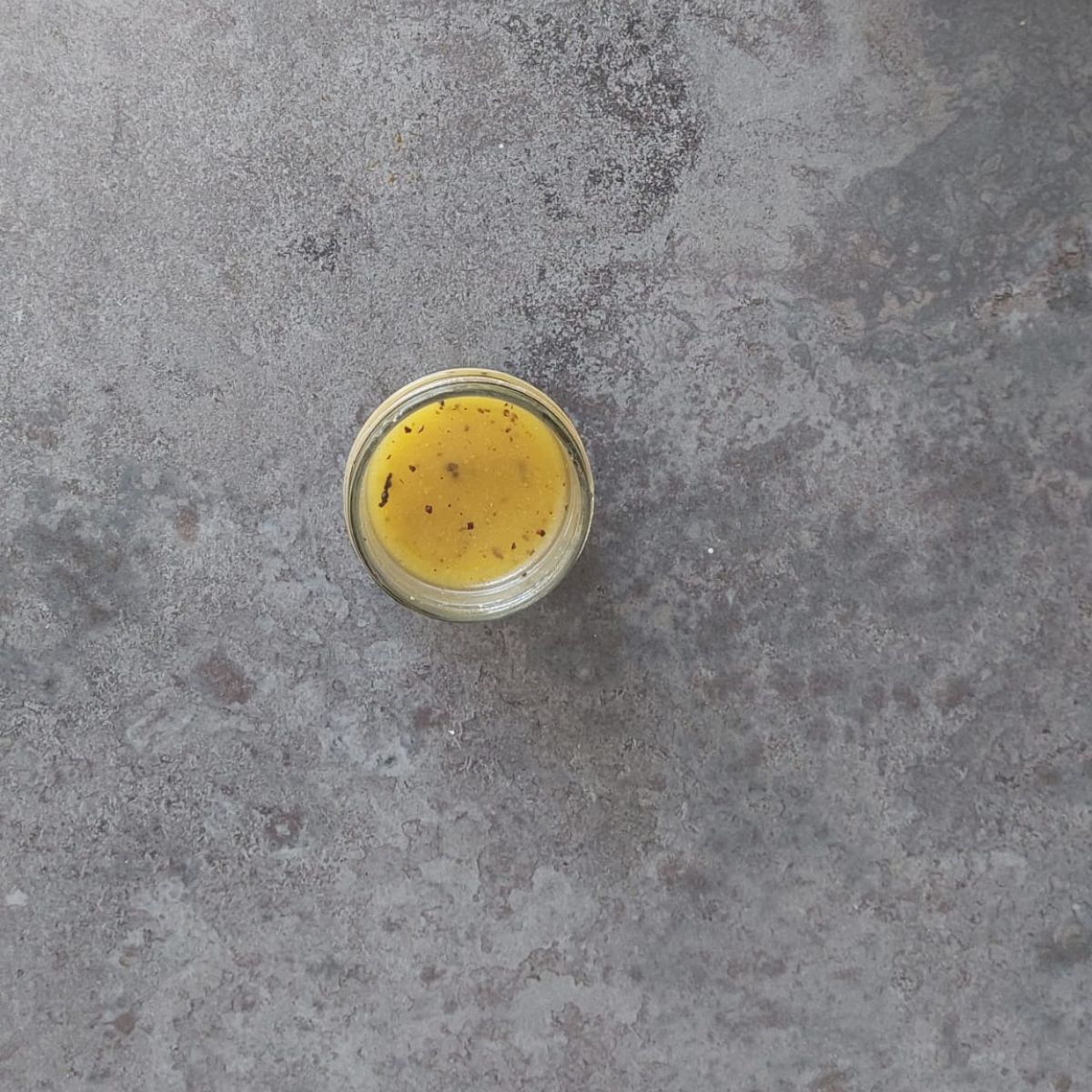 Step 1: In a small jar, add olive oil, salt, pepper, maple syrup, lemon juice and mustard.