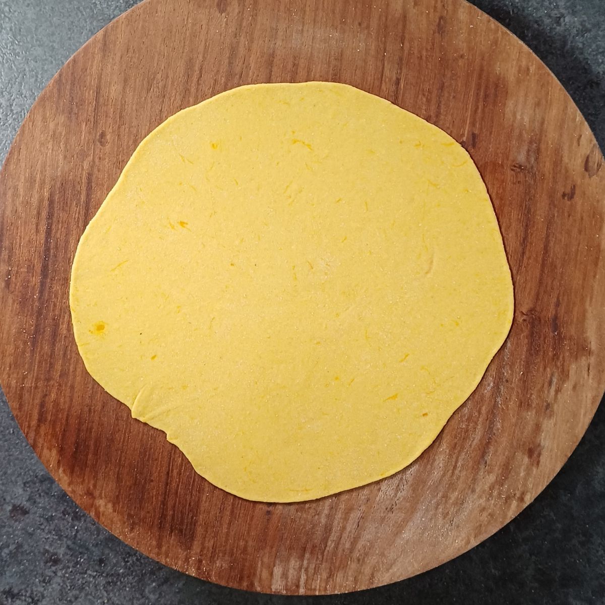 - Roll it with a rolling pin into a thin circular disc.