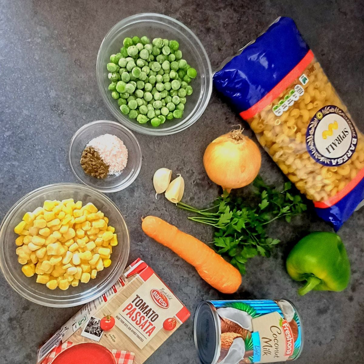 This creamy and delicious pasta dish is made with a medley of vegetables, coconut milk and basic spices. It makes a perfect midweek pasta dinner that comes together in under 30 minutes.